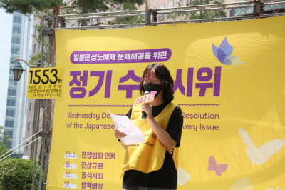 안녕하세요. 전쟁과여성인권박물관 대학생 SNS 기자단으로 활동하고 있는 이수현입니다. 우선 이렇게 오늘 수요시위 현장에서 함께 해주신 분들께 진심으로 감사하다는 말씀을 드립니다.