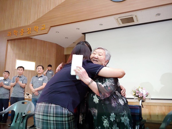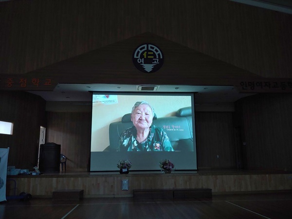 행사에서는 최고령자에게 주는 상품이 있어 길원옥 할머니께서 선물도 받으셨습니다. 행사에 함께 참여해준 학생들의 열화와 같은 응원에 더 큰 행복을 느낀 하루였습니다. 선생님들과 학생들께 감사드립니다.