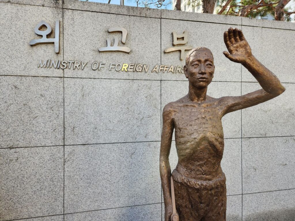 서울 종로구 외교부 청사 앞에서 열린 기자회견에서 한일역사정의평화행동 연대단체 회원들은 “정부가 피해자의 반대에도 한-일 외교 장·차관 회담을 연이어 진행하며, 강제동원 한-일 합의를 추진하고 있다”며 “굴욕적인 외교를 중단하라”고 촉구했습니다.