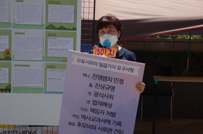 용인에서는 용인평화비 앞에서 1501차 수요시위 공동 시청으로 함께하셨습니다. 매주 수요일 이렇게 연대활동을 하고 계십니다. 감사합니다.