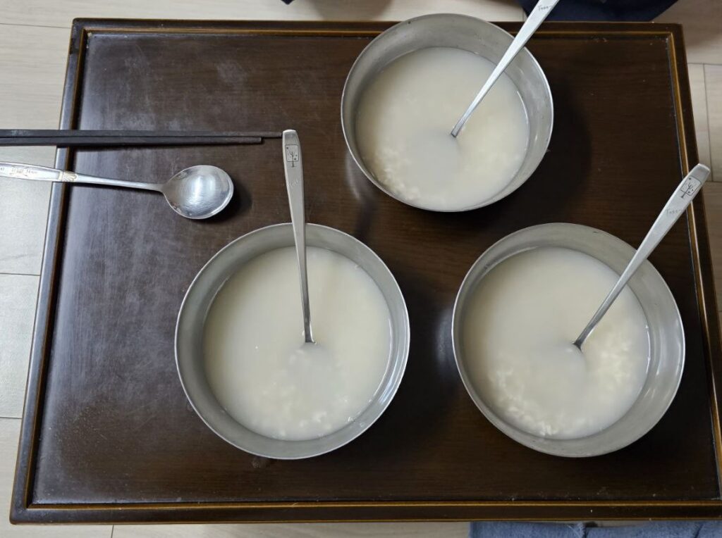 집에 도착하자마자 할머니는 활동가들에게 감주와 살구, 박카스를 꺼내주셨습니다. 활동가들이 배가 부르니 조금만 달라고 해도 할머니께서는 사랑을 가득 담아 커다란 그릇에 가득 담아 주십니다. 할머니의 사랑과 마음을 알기에 활동가들은 그릇에 붙은 감주 밥알을 싹싹 긁어 먹습니다. 할머니께서는 유독 먹는 양이 적어 마지막까지 감주를 먹고 있던 도담 활동가를 보시곤 “그렇게 못 먹으니 시집가긴 멀었다. 얼라다, 얼라.”라고 하셨습니다. 간식을 먹으며 할머니와 함께 두런두런 이야기를 나눌 수 있었습니다.