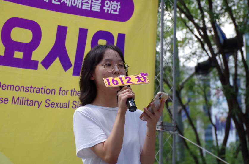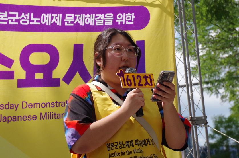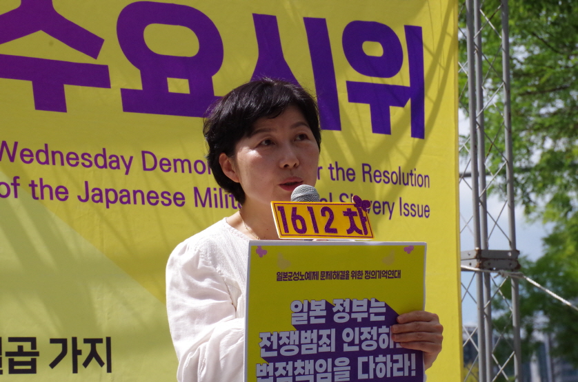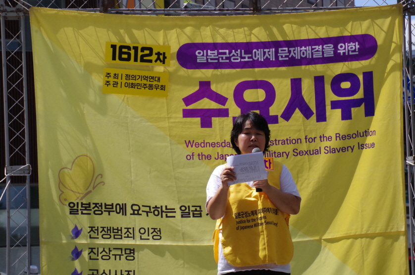 1612차 일본군성노예제 문제해결을 위한 수요시위 주관은 이화여자대학교 민주동우회에서 하였고 사회는 신주영 사무국장님이 보았습니다.