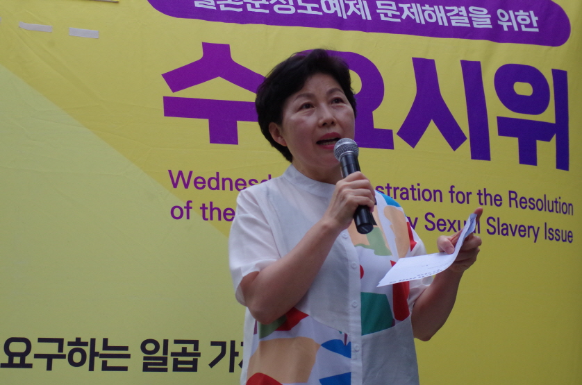 여기 계신 분들을 포함해 수요시위를 지지하고 함께 연대하는 사람들의 정신이 꼭 계속되었으면 좋겠습니다. 저 또한 오늘 이 자리에 같은 마음으로 참여하게 되어 기쁘고 앞으로도 이 마음을 간직하고 활동하고자 노력하겠습니다. 지금까지 들어주셔서 감사합니다.