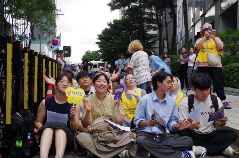 그럼에도 수요시위는 존재하고 연대의 힘은 분명히 존재합니다. 오늘 저희의 모임이 그리고 이 연대가 희망이자 끈질김 그리고 결실을 맺길 바라봅니다. 감사합니다.