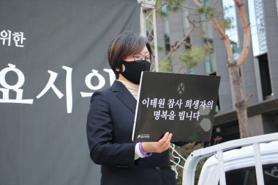 국가는 국민의 안전을 최우선 과제로 삼아야 합니다. 정부는 이번 참사에 대한 원인을 신속하고 정확하게 밝히십시오. 책임자인 대통령 윤석열, 이상민 행정안전부 장관, 오세훈 서울시장, 박희영 용산구청장 등은 응당한 정치적, 법적 책임을 지십시오. 개선 대책을 신속하게 마련하여 다시는 유사한 일이 반복되지 않도록 하십시오. 반성 되지 않은 역사는 반드시 되풀이된다는 사실을 이곳에 모인 우리는 너무도 잘 알고 있습니다.