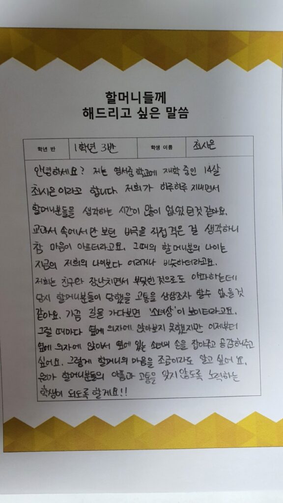 연대발언_희망세상일구는 구로여성회_최시은 학생 편지글