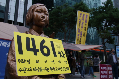 일본군성노예제 문제해결을 위한 1461차 수요시위 기자회견은 코로나19 거리두기로 기자회견형식으로 진행되었습니다. 다만 인원제한은 풀려서 요 근래보다 많은 분들이 현장에 참가해 주셨습니다. 주관단체는 새 세상을 위한 천주교 여성공동체입니다.