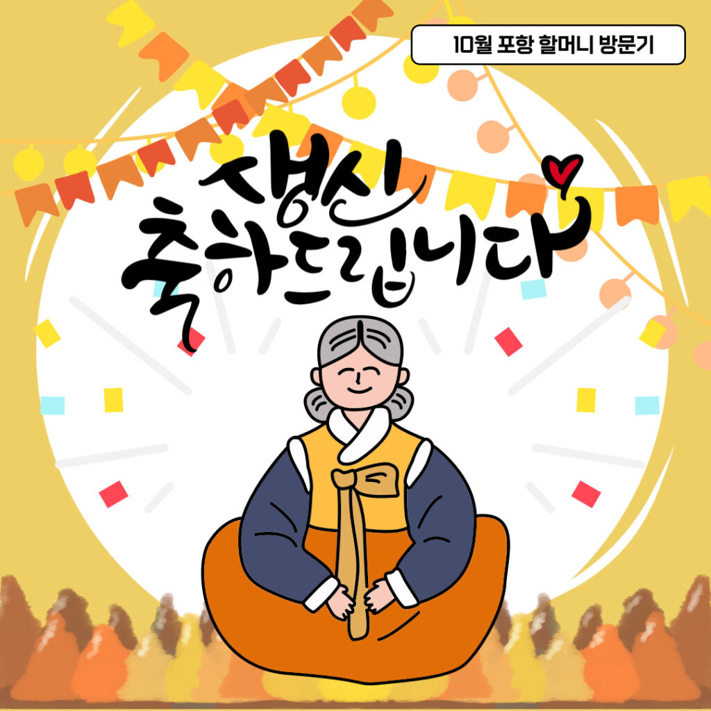 활동가들이 차에 올라타려고 하자 ‘이렇게 가면 서운해서 우야노’, ‘또 오거래이’ 하면서 울먹이시던 모습이 잊혀지지 않습니다. 할머니를 더 자주, 오래 찾아뵐 수 있었으면 좋겠습니다. 할머니를 만나 뵐 때마다 평범하고도 특별한 한 사람의 삶이 얼마나 숭고한지 생각하게 됩니다. 우리 할머니의 생신을 진심으로 축하드리며 오래오래 건강하고 행복하시기를 진심으로 기원합니다!