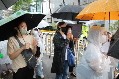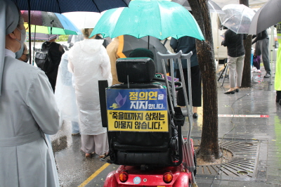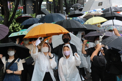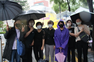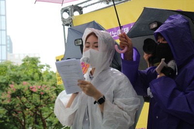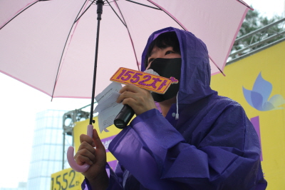 이렇게 비가 오는데도 우리가 나온 이유는 인권이 지켜지는 평화로운 성평등 세상을 원하기 때문입니다. 수원여성인권돋음은 모든 여성폭력을 반대합니다. 이에 오늘 비가 오지만 일본군성노예제 문제 해결을 위해 함께 큰 목소리로 우리의 염원을 담아냈으면 좋겠습니다.
