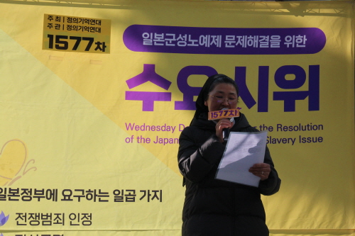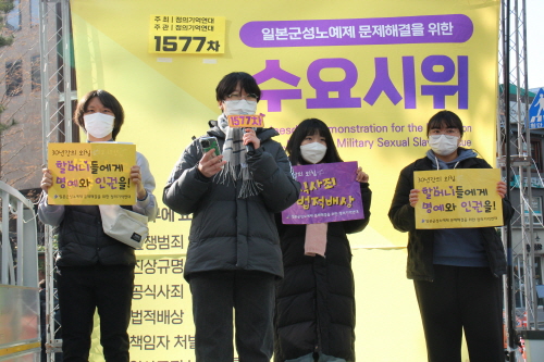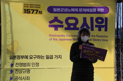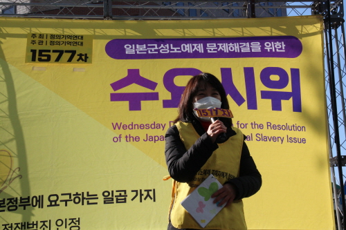 2023년 첫 수요시위인 1577차 일본군성노예제 문제해결을 위한 수요시위는 수요시위 31주년 기념으로 진행되었으며 정의기억연대에서 주최, 주관하였습니다. 사회는 정의기억연대 강혜정 이사가 보았습니다.
