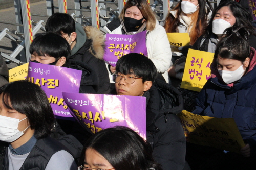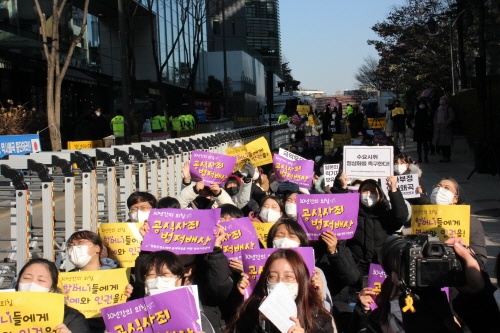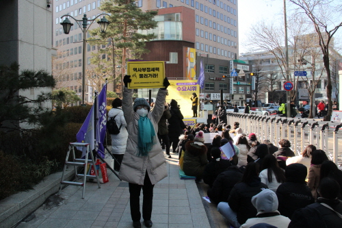 수요시위에 참석한 여러분 모두 새해 복 많이 받으시길 바랍니다. 우리의 새해가 마냥 순탄하지만은 않을 것 같습니다. 지난해보다 더 심해지면 심해지겠지요. 하지만 우리를 가만두지 않으려는 어리석은 정부가 모르는 점이 하나 있습니다. 우리에게 당신들이 만든 질곡은 더 큰 힘이 된다는 것입니다. 우리는 시간이 흐를수록, 그 사이에 걸림돌이 있을수록 더 굳은 걸음으로 앞을 향해 갑니다. 멈추지 않겠습니다. 넘어져도, 누군가 발목을 잡아도 꿋꿋하게 땅을 딛겠습니다. 우리의 맞잡은 손은 그 누구의 방해보다 강합니다. 여러분 함께 나아갑시다. 새해에도 저 후퇴하는 정권을 뒤로하고 새날을 향해 나아갑시다. 저부터 그 길에 함께 할 것을 다짐드리며 발언을 마칩니다.