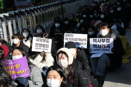 1992년 1월 8일은 오늘보다 더 추웠습니다. 31년 전의 우리 생활여건은 지금보다 훨씬 열악했으니까요. 오늘 제가 입은 두툼한 패딩코트도, 시린 손을 덥혀줄 손난로도 없던 시절이었죠. 피해자 할머니들도 보일 듯이 말듯이 꼭꼭 숨어계셨고요. 우리를 바라보는 행인들의 시선은 싸늘했습니다. 그러나 오늘처럼 정의를 향한 우리의 함성은 뜨거웠고 전쟁범죄를 규탄하는 우리의 울분은 하늘을 찌를 듯 드높았습니다. 구호가 적힌 하얀 조끼를 입고 겨우 50여명의 중년 여성들이 일본 대사관 주변을 한 바퀴 빙 돌며 소리소리 질렀던 모습니다.