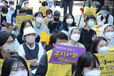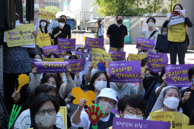 국내외 시민들이 보다 나은 세상을 위한 쟁투에 삶을 헌신하는 사이 한국의 언론은 침묵했고 한국정부도 외면했다. 가해국의 식민지 전쟁범죄 인정과 진정한 사죄를 바랐던 피해생존자들의 희망, 다시는 유사한 일이 반복되지 않는 전쟁 없는 평화로운 세상에 미래세대가 살길 바랐던 그 바람은 지속적으로 짓밟혔고, 거짓 ‘화해’와 ‘미래’라는 미명으로 ‘갈등’과 ‘과거’에 속박되었다. 가해국이 피해국에게 해결책을 내놓으라 어깃장 놓는 참담한 상황 속에서, 한국정부는 동분서주 가해국이 원하는 해법을 모색하며 만남을 구걸하는 굴욕외교, 자해외교를 자행하고 있다. 일방적으로 한일정상회담을 공표했다가 ‘결정된 바 없다,’ ‘불쾌하다’는 일본 총리의 반응이 언론을 뒤덮는 대참사마저 일으켰다. 심지어 역사의 시계를 거꾸로 돌린 아베 신조 전 총리에 대한 비판적 평가는커녕 자국의 야당도 반대하는 국장에 참석하려 한다. 어떻게 이런 일이 대한민국 독립 77주년에도 일어날 수 있단 말인가.