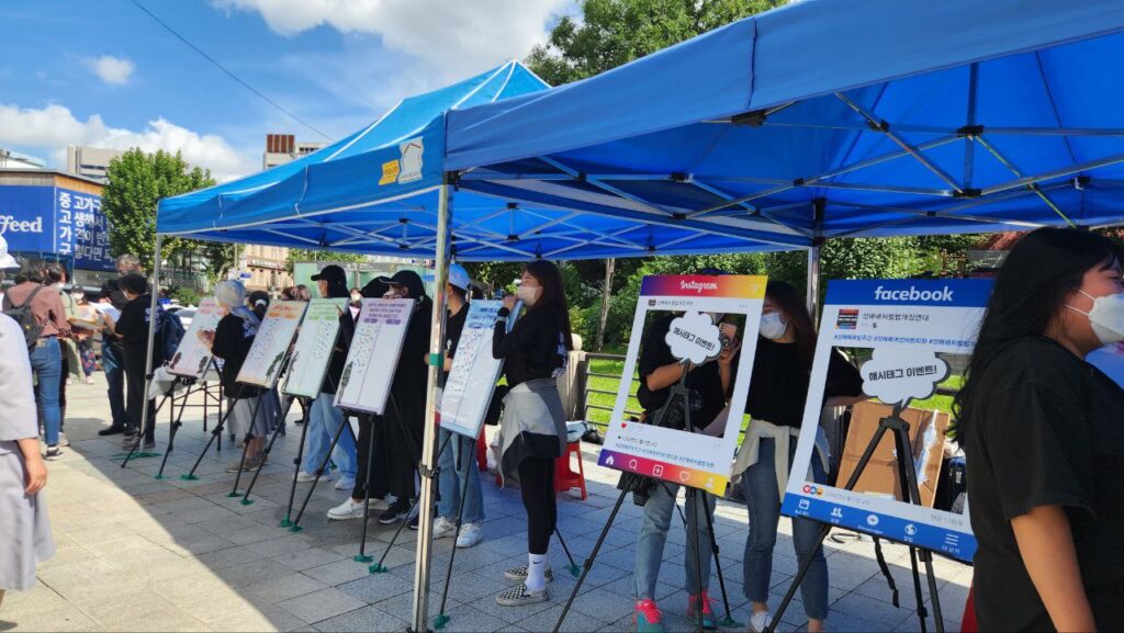 성매매처벌법개정연대는 반성매매활동가 및 시민들과 함께 지난 9월 19일(월)~23일(금) 성매매처벌법 개정촉구 전국행진을 했습니다. 마지막날인 9월 23일(금) 서울 보신각에서는 오후 1시부터 성매매관련 상식 게임과 SNS 인증샷 및 서명부스를 열고 시민들을 맞았습니다. 정의연도 보신각으로 달려가 부스와 집회에 참여하였습니다. 성매매는 우리 모두의 문제입니다. 모두의 인권이 존중되는 세상을 희망합니다.