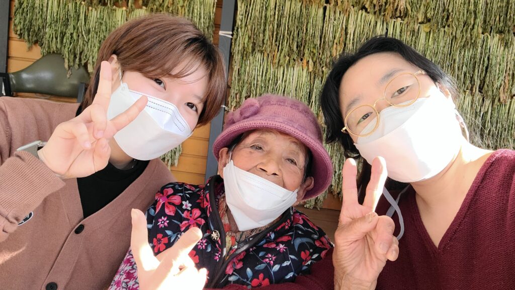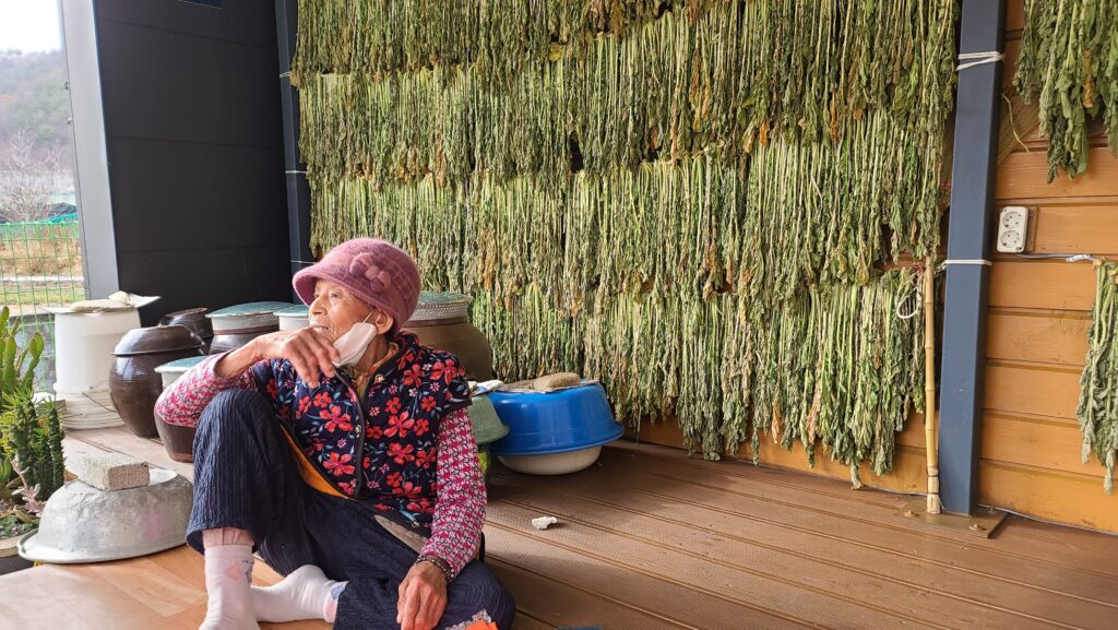 여느 때처럼 할머니께서는 평상에 앉아 활동가들을 맞아주셨습니다. 할머니 댁에는 아드님께서 이전에 오셔서 말려둔 무청이 마치 커튼처럼 벽 한쪽을 가득 메우고 있었습니다. 할머니께서는 “싸게 싸게 왔다~”며 반가운 마음을 숨기지 않으셨습니다. 할머니를 처음 뵙는 새싹 활동가도 따뜻한 웃음으로 맞이해주셨습니다.