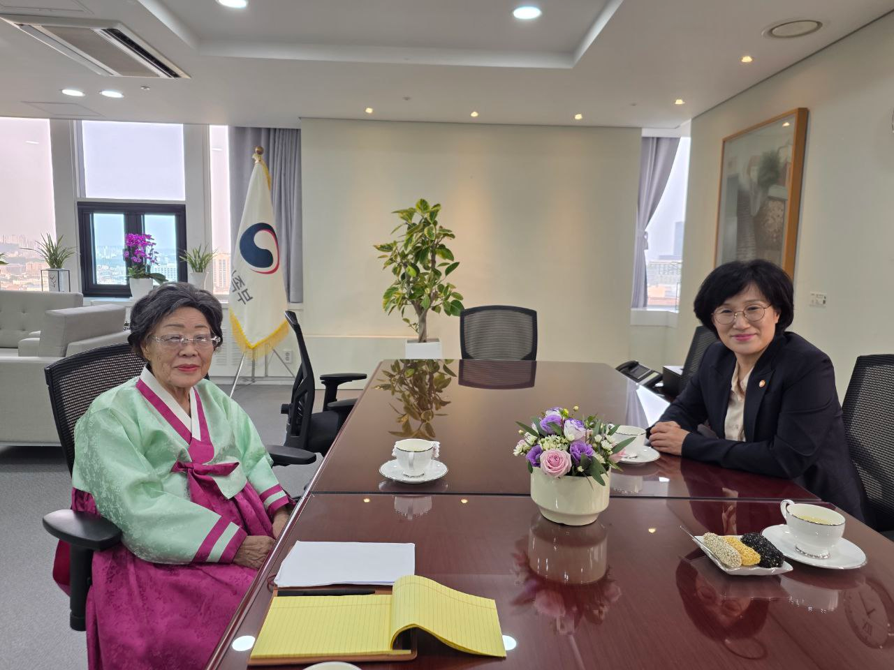 9월 30일, 정의기억연대 이나영 이사장은 이용수(피해생존자, 인권운동가) 할머니를 모시고 성평등가족부 장관실에서 지난 10일 새롭게 취임한 원민경 장관을 면담했습니다. 할머니께서는 그간 여성가족부 수장이 없어 곤란했다고 하시며, 장관 취임을 진심으로 축하해주셨습니다. 일본 정부의 사죄, 배상을 다시 한번 강조하시며, 일본 정부를 상대로 피해자들이 쟁취한 2023년 11월 23일 고등법원 승소 판결 집행을 위해 한국 정부가 애써 달라고 하셨습니다. 또한 화해치유재단 잔여금은 일본에 꼭 돌려주라는 당부를 전하셨습니다.