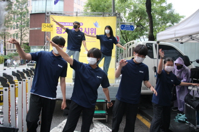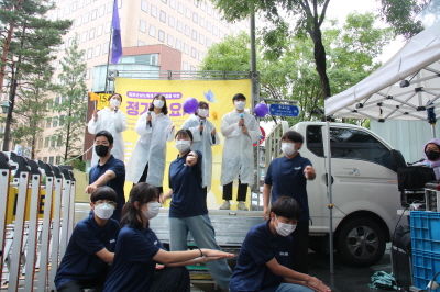 6.15공동선언실천 남측위원회 여성본부 유정은 집행위원(한국교회여성연합회 부장)님과 황보현 집행위원(한국기독교교회협의회 부장)님의 성명서 낭독 후 제천간디학교 학생들의 신나는 <평화 만들기> 율동을 본 후 6.19 세계전시성폭력추방의날을 기념하는 간단한 구호와 퍼포먼스를 끝으로 수요시위를 마무리했습니다.