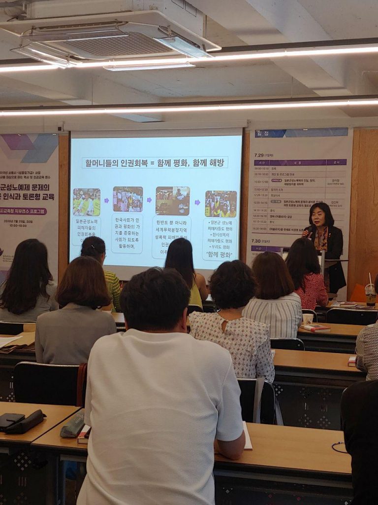 7월 29일과 30일 이틀에 걸쳐 초·중등교사를 대상으로 하는 역사 및 인권교육 연수 <일본군성노예제 문제의 올바른 인식과 토론형 교육>을 진행했습니다.