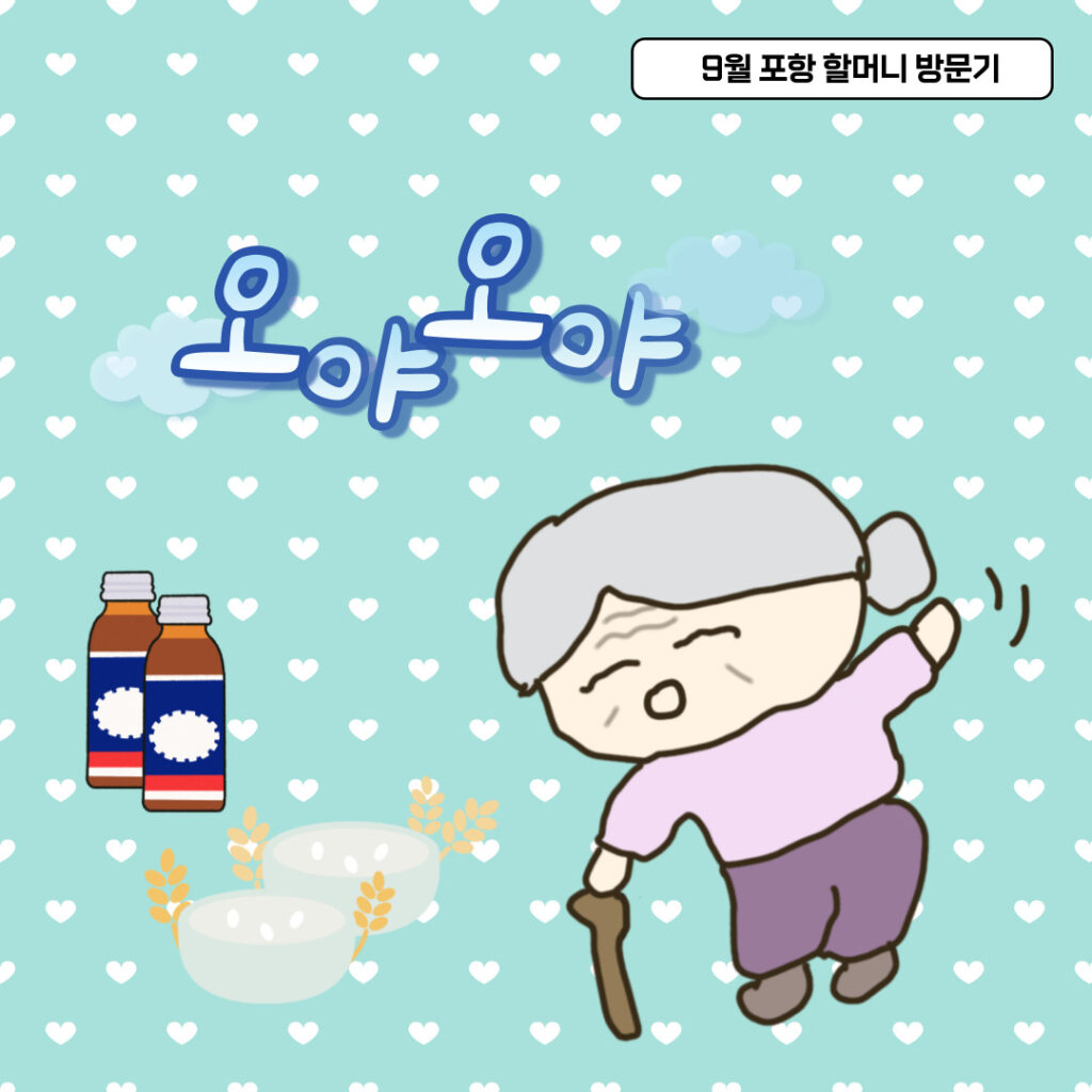 포항역에 도착해 '할머니~저희 포항이에요~금방 갈게요'하고 전화를 드리니 '오야 오야 오야' 반갑게 맞아 주셨습니다. 할머니께서는 기분이 좋으시면 '오야'를 더 많이 말씀하시는데요, 이날도 연신 '오야'를 반복하셨습니다.