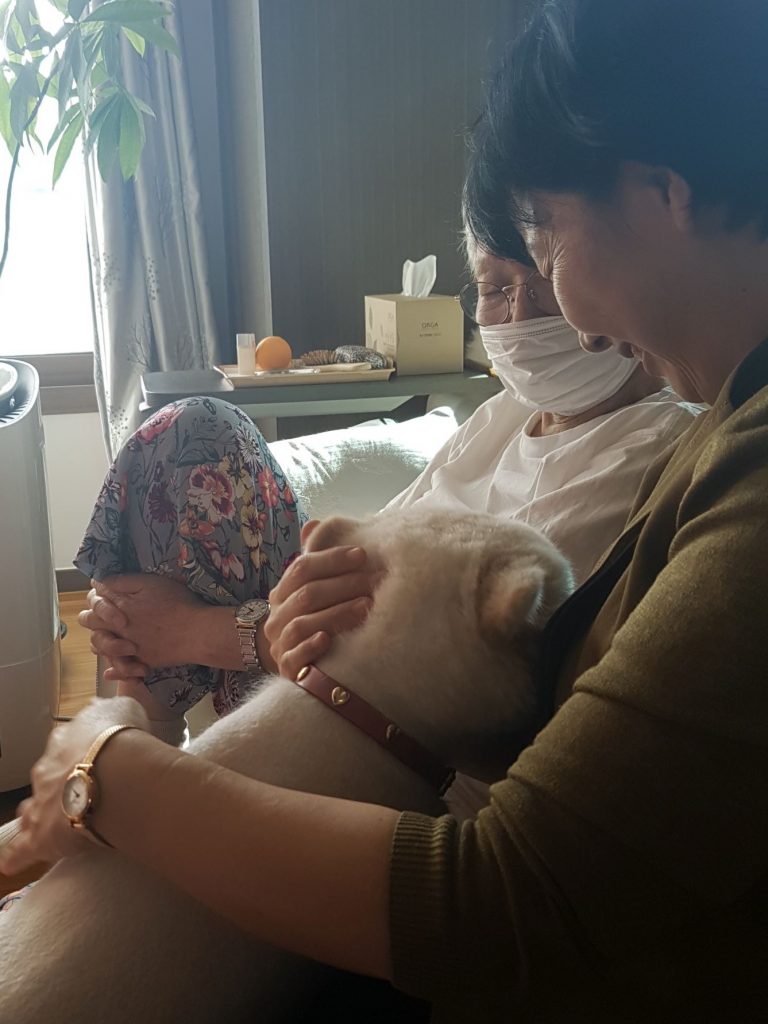 또다른 김** 할머니댁에 도착하니 반려견 하니와 함께 반갑게 맞이해주십니다. 요즈음은 날씨가 좋아 오전 오후 두번 산책을 나가신다고 하십니다. 어제는 산책을 나가셔서 노래도 부르셨답니다. 몇달전만해도 방문했을때 주로 TV를 보셨는데 말씀도 많이 하시고 많이 웃으십니다. 할머니와 하니와 놀고 있던 중 외출하셨던 따님이 돌아오니 격하게 반가워 하시고 기분이 더욱 좋아지셨습니다. 다같이 거실에 앉아 옛날이야기며 손녀 이야기를 나누다보니 기차 시간이 다가와 부랴부랴 일어나니 할머니께서 또 놀러오라고 손을 꼬옥 잡아주십니다. 할머니께서 건강하시고 줄거워하시면 돌아오는길이 덩달아 줄겁습니다...