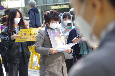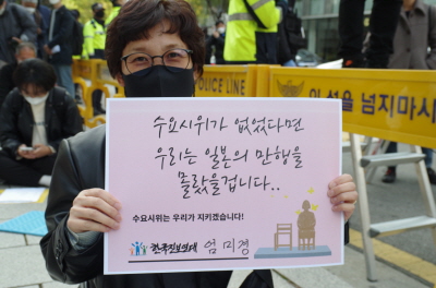 오랜만에 현장에서 많은 분들을 뵈니 떨리기도 하고 긴장도 많이 되었습니다. 최근과 다르지 않게 우익단체들은 온갖 혐오로 피해자와 수요시위, 참가자들을 공격했습니다. 그러나 많은 분들이 연대의 힘으로 함께하면서 더욱 힘있게 수요시위를 진행하였습니다. 서로의 말을 듣고 함께 외치며 연대와 평화의 힘을 느꼈습니다. 감사합니다. 앞으로도 현장에서 많은 분들을 뵙고 싶습니다. 고맙습니다.