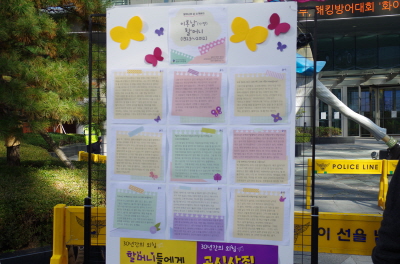 세계 곳곳의 사람들은 배경에 상관없이 할머니들과 할머니들의 투쟁에 관심을 갖고 있습니다. 역사수정주의자들이 어마어마한 돈을 들여 할머니들에게 일어난 일이 가짜라는 거짓말을 퍼뜨리지만, 진실은 언제나 승리합니다. 그들은 이 자리나, 세계 어디에서나 할머니들의 이야기를 침묵시키지 못할 것입니다.
