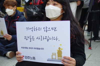 민주노총은 일본군 성노예 피해자 할머니와 위안부의 역사, 일제강점 식민지배에 대한 역사를 바로 세우고, 일본으로부터 사죄와 배상이 진정으로 이뤄지는 날까지 함께 투쟁할 것입니다.