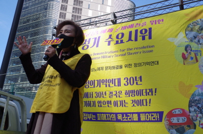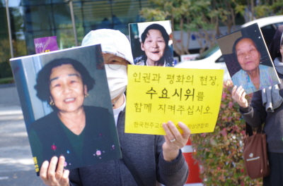 평화로를 전쟁 아닌 전쟁터로 만들고 있는 저들이 바로 수요시위의 정신이 살아있어야만 하는 근거다. 어떠한 정부 간 합의로도 일본군성노예제 문제가 해결되지 않았다는 증거다. 사라졌다고 생각했던 실천의 책임을 누가 짊어져야 하는지 되묻는 역설이다. 평화와 인권이 물결치는 세상을 바랐던 피해생존자들의 소망을 우리가 반드시 실현시켜야 할 이유다.