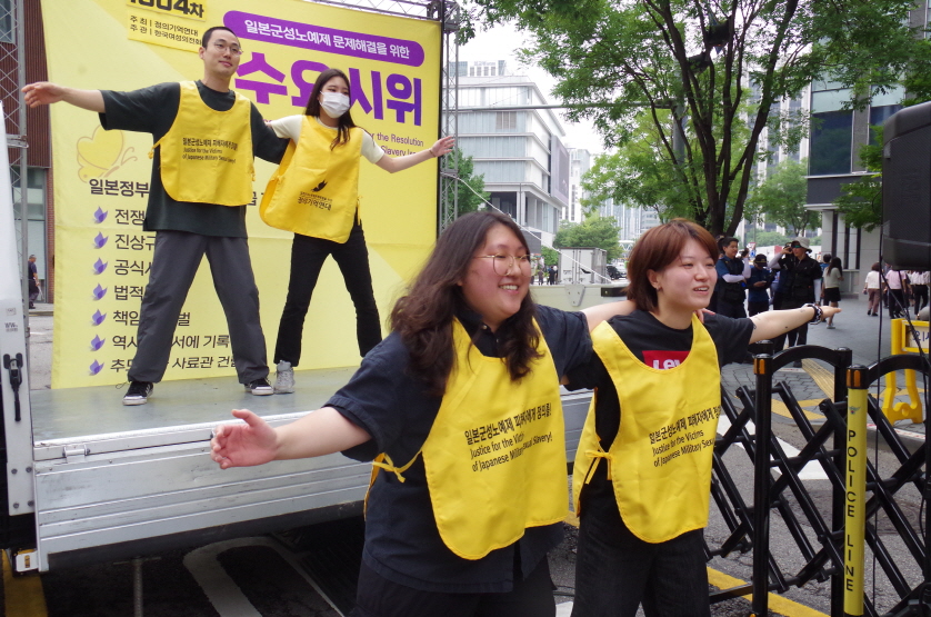 수요시위 현장에는 예수의 까리따스수녀회, 서울 지역 학회‧소모임 동아리, 서울강서양천여성의전화, 서울대학교 시사동아리 ‘세상엔’, 국민대학교 시사영상제작동아리 ‘클립’, 배우고 떠나는 동아리 국민대 ‘독서기행’, 성신여대 시사토론동아리 ‘아는언니’, 성신여대 독서토론동아리 ‘독썰’, 국민대 언론비평동아리 ‘팩트체커’, 경기도 안산 이정섭, 평화나비 네트워크, 명지대학교 강경대열사추모사업회, 극단 경험과상상 등 개인, 단체에서 함께 연대해 주셨습니다.