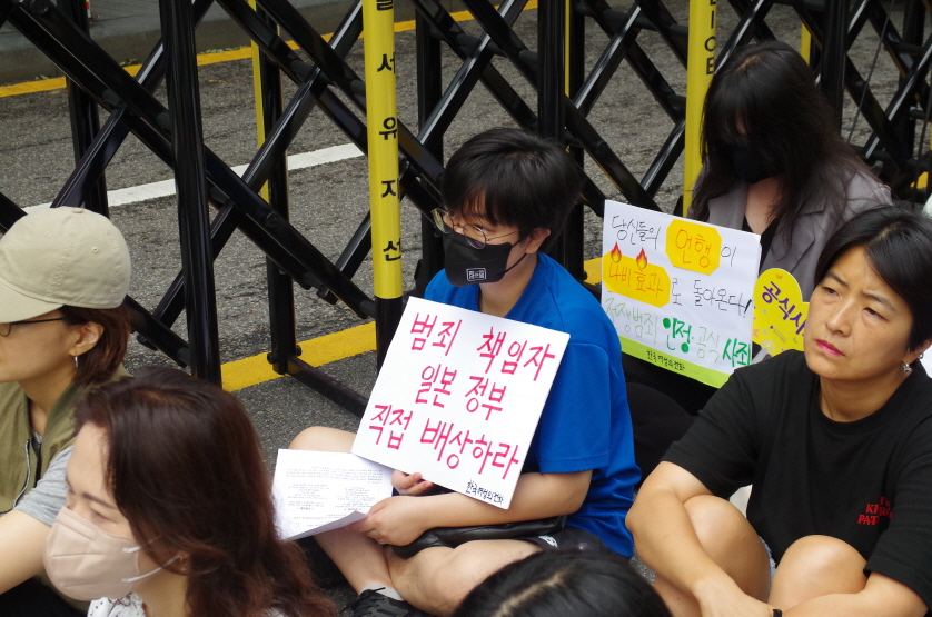 “일본과의 군사협력도 매국이다! 윤석열 정부는 매국외교 중단하고 일본사죄 받아내라!”