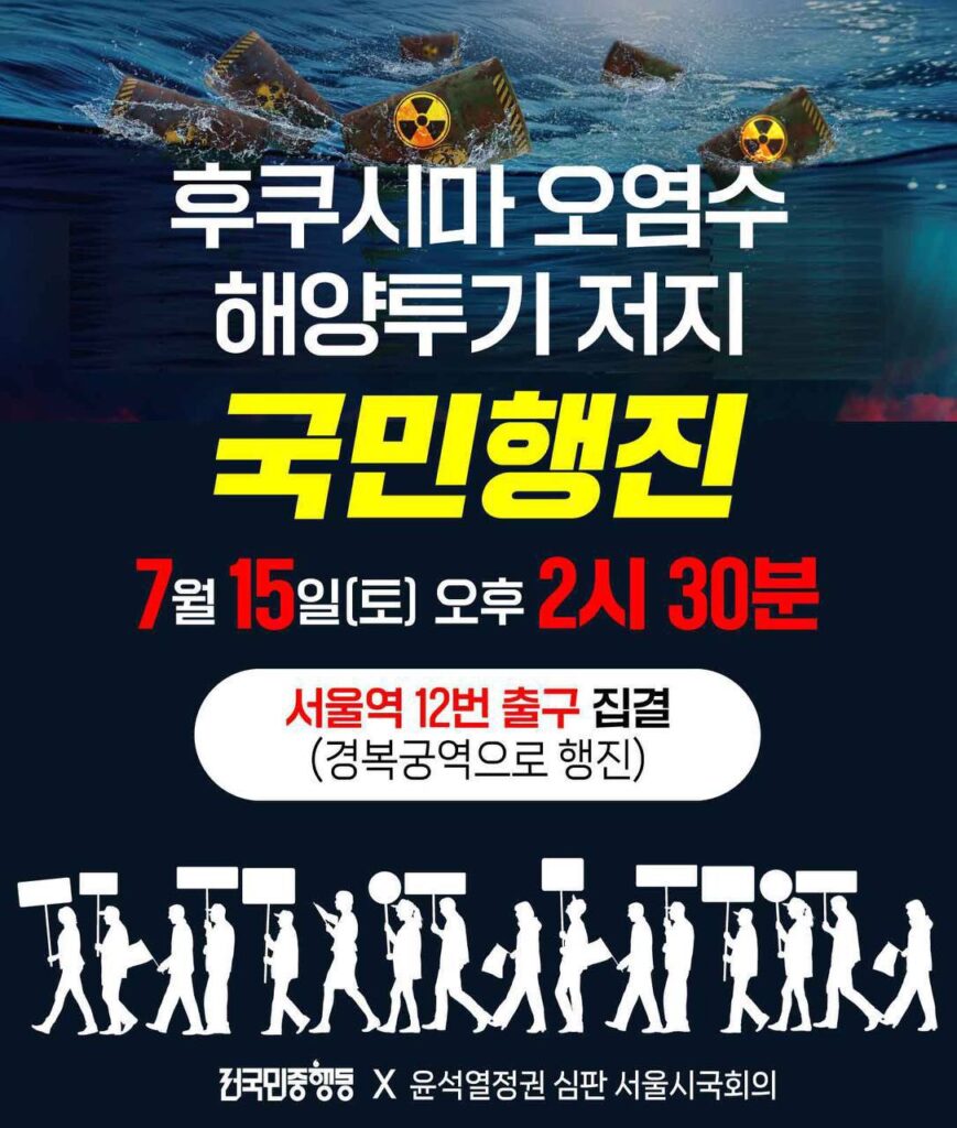 "방류하는 자, 방기하는 자 모두가 공범이다" 일본 후쿠시마 오염수 해양투기 저지 5차 전국행동의 날 2023년 7월 15일(토) 오후6시, 광화문 앞(일본대사관 방향)
