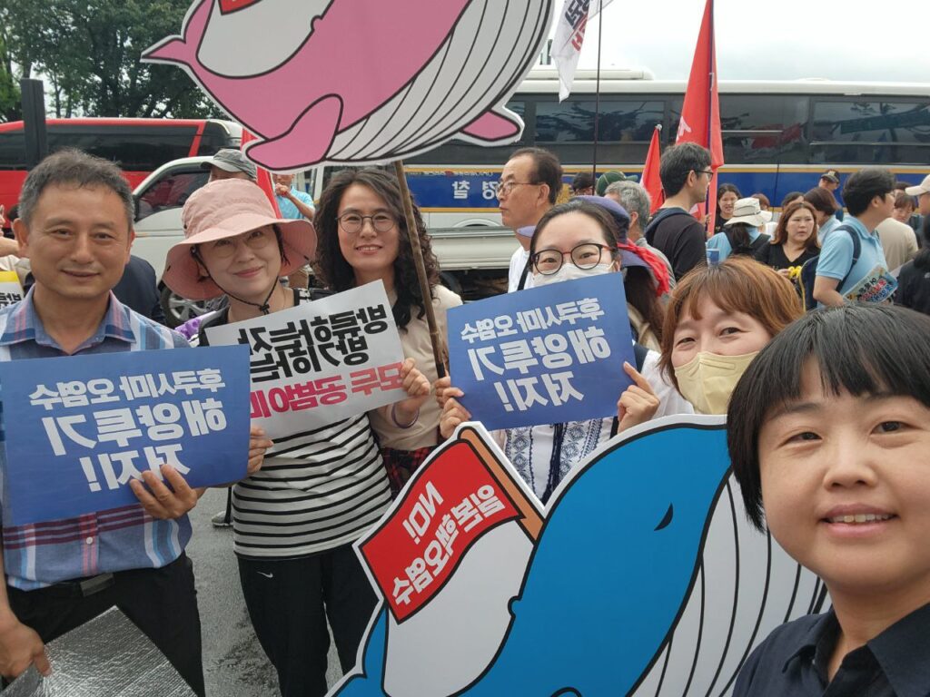 정의연은 일본 방사성오염수해양투기저지 공동행동에도 함께 하고 있습니다. 후쿠시마 오염수 해양투기 저지를 위해 행진에도 참여하여 끝까지 자리를 지켰습니다. 참가자들과 함께 "핵오염수 해양투기 저질하라" 힘차게 구호도 외쳤습니다.