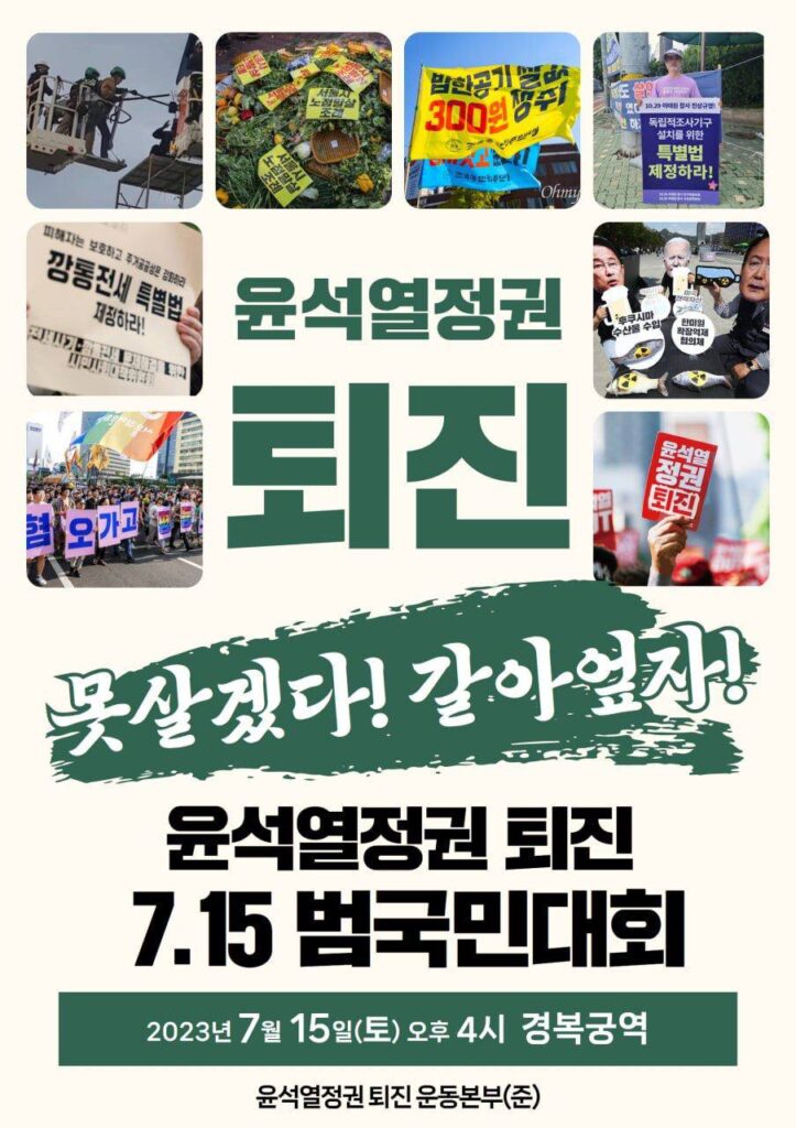 2023년 7월 15일 / 못살겠다 갈아엎자 윤석열정권퇴진 7.15 범국민대회 참가자 일동