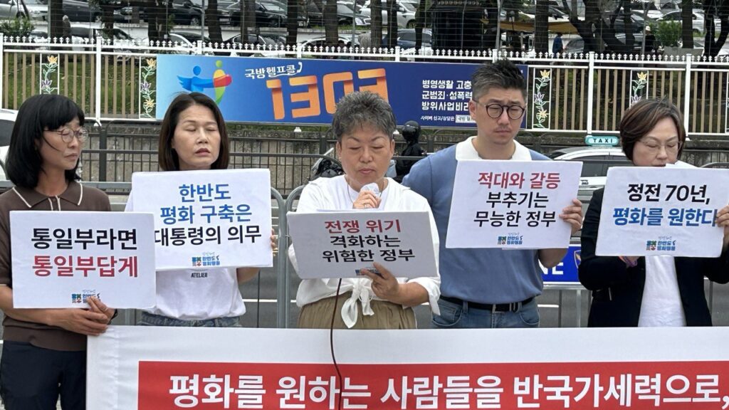 마지막으로 기자회견 참여자들은 “대통령이 ‘반국가세력’을 운운하며 막으려 해도 우리는 멈추지 않을 것이며, 더욱 큰 목소리로 적대 중단, 한반도의 종전과 평화를 외치고 행동할 것”이라고 밝혔습니다. 이어 “전쟁을 반대하고 평화를 원하는 시민들은 7월 22일 토요일 오후 4시, 서울광장에서 출발하는 정전 70년 한반도 평화행진과 평화대회에서 모두 만나자”고 호소했습니다.