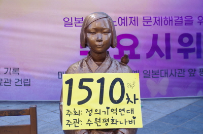 1510차 일본군성노예제 문제해결을 위한 수요시위는 코로나19 방역지침에 따라 1인시위 형식으로 진행되었습니다. 주관은 수원평화나비였습니다.