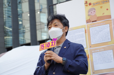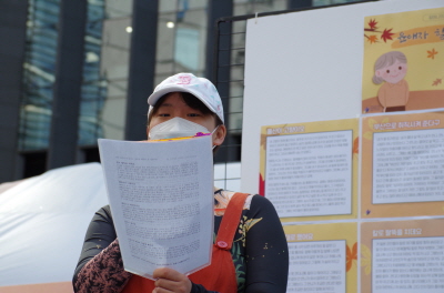 연대발언 시간에는 오정하(수원시가족여성회관 지역연대담당) 님, 이성호(풍물굿패 삶터 터장) 님의 현장 연대발언이 있었고 김진태(자전거문화사회적협동조합 이사장) 님의 연대발언을 이정원 수원평화나비 회원께서 대독하였습니다.