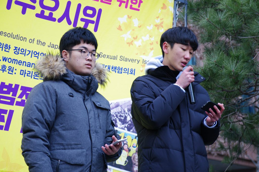 1371차 일본군성노예제 문제해결을 위한 정기 수요시위는 안남고등학교 동아리 HIT 주관으로 진행되었습니다. 대구에서 오신 이용수 할머니, 제주 오현고등학교, 프로젝트 후웬, 이화나비, 응곡중학교, 국민대 평화의소녀상 건립추진위원회, 소하동 성당, 말씀의성모영모수녀회, 고려성신SFC, 평화나비 네트워크, 부개여자고등학교와 시민들 250여명이 함께 했습니다.