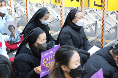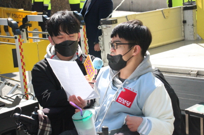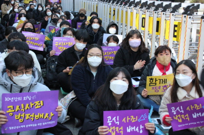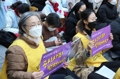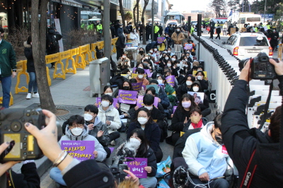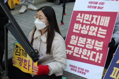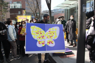 그리고 여러 대학생, 청년 단체들이 수요시위를 지키기 위해 결성한 대학생 공동행동의 의지와 연대의 마음을 밝힌 영상과 대학생 공동행동 단체 중 하나인 평화나비 네트워크의 중앙집행부 이담비 활동가가 기조 발언을 하였습니다.
