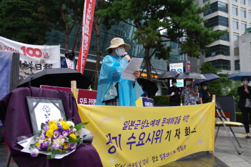 1455차 일본군성노예제 문제해결을 위한 수요시위는 정의기억연대가 주최, 주관을 하고 코로나19에 대비하여 간단한 기자회견으로 진행하였습니다.
