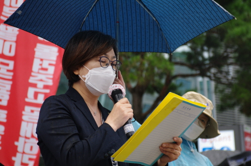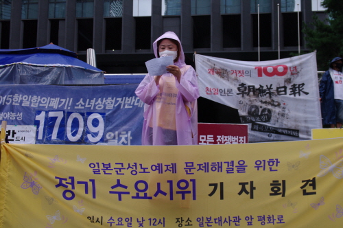 이어 정의기억연대 이나영 이사장의 주간보고 후 마지막으로 성명서 낭독을 끝으로 1455차 수요시위는 마무리되었습니다.