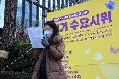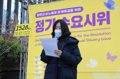 마지막으로 정의기억연대 한경희 사무총장의 성명서 낭독을 끝으로 1528차 일본군성노예제 문제해결을 위한 수요시위는 마무리되었습니다.