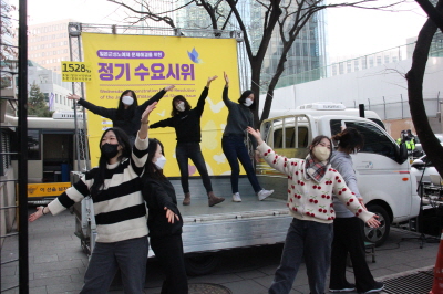 다음으로 <평화 만들기> 율동공연을 청년광장 회원들과 정의연 포카, 기린 활동가가 연합으로 하였습니다.
