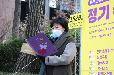 1528차 일본군성노예제 문제해결을 위한 수요시위는 정의연, 주최·주관으로 진행되었습니다. 사회는 최광기 이사가 보았습니다. 오는 1월 28일은 여성인권운동가 김복동 할머니께서 돌아가신 지 3년이 되는 날입니다. 김복동 할머니 3주기를 맞아 조금 특별한 수요시위를 진행했습니다.