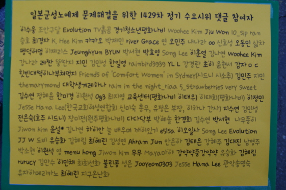 마지막으로 성명서 낭독 후 일본군성노예제 문제해결을 위한 1430차 수요시위는 끝을 맺었습니다. 온라인으로 전국에서 해외에서 함께해 주신 여러분 감사합니다.