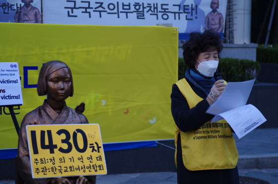 일본군성노예제 문제해결을 위한 1430차 수요시위도 역시 온라인으로 진행되었습니다. 주관은 한국교회여성연합회에서 맡아 주셨습니다. 유튜브 라이브를 보시며 많은 분들이 댓글로 함께해 주셨습니다.