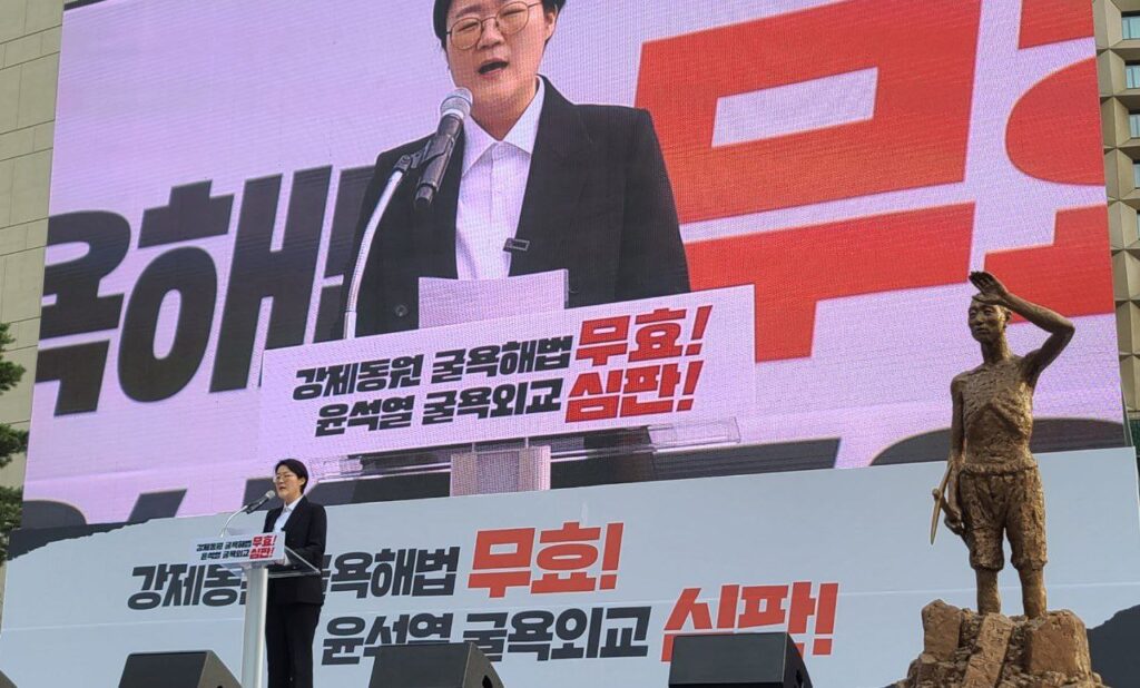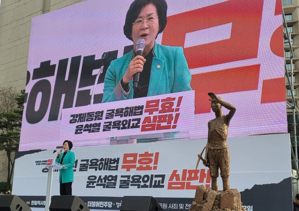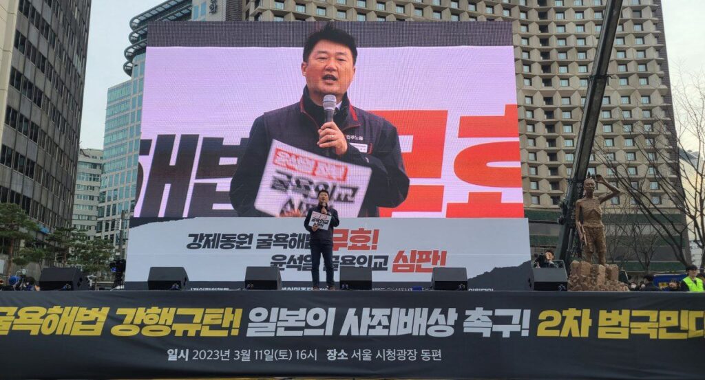 강제동원 굴욕해법 강행 규탄! 일본의 사죄배상 촉구!