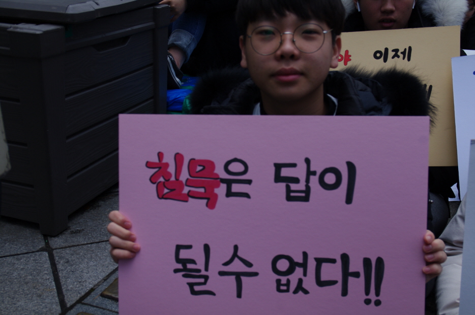 역사에 당당해지는 것은 굉장히 어려운 일입니다. 전 세계적으로도 역사 앞에서 당당할 수 있는 나라는 극소수일 것입니다. 하지만 역사 앞에서 당당한 국민이 되기 위한 노력은 끊긴 적이 없습니다. 독일은 과거 자신들이 저질렀던 만행을 끊임없이 사죄하기 위해 노력하고 있고, 일본도 몇몇 민간단체에서 올바른 역사를 배울 수 있도록 노력하고 있습니다. 우리도 대한민국 역사의 한 장면으로서 후대에 자랑스럽게 물려줄 수 있는 역사를 만들기 위해 이곳에 서 있습니다.