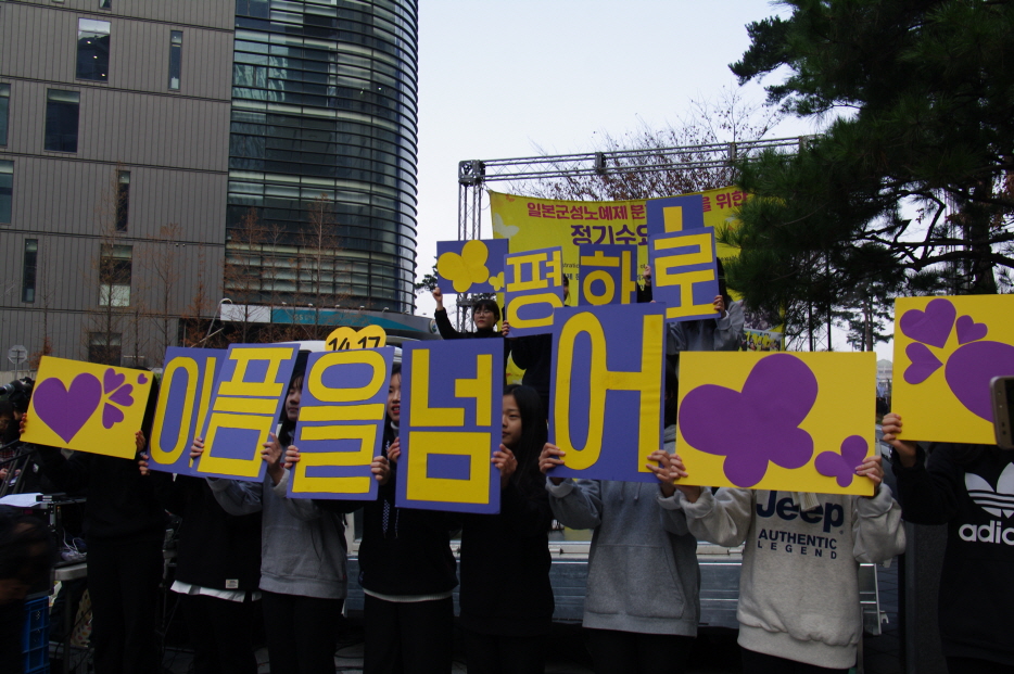 우리, 떳떳한 대한민국을 만들어봅시다. 사과받을 것은 사과받고, 사과할 것은 사과하고, 할 수 있는 최선을 다해 역사 앞에 떳떳해집시다. 우리, 손잡읍시다. 역사는 누구 한 사람이 만들어내는 것이 아닙니다. 사회 구성원 모두가 공통된 뜻을 갖고 끊임없이 노력해야 만들 수 있습니다. 일본에게도 바라봅니다. 일본이 만들어냈던 참혹한 과거를 잊을 수는 없겠지만, 일본도 사죄, 변화, 교육을 통해 일본이 할 수 있는 최선을 다해 떳떳해졌으면 좋겠습니다.