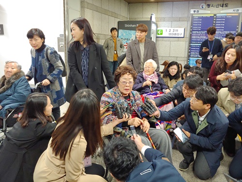 시작한 지 3년이 다 돼서야 11월 13일 첫 재판이 열렸습니다. 일본 정부의 법적 책임을 묻기 위해 일본군‘위안부’ 피해자 길원옥, 이옥선, 이용수 할머니가 법정에 참석하셨습니다.