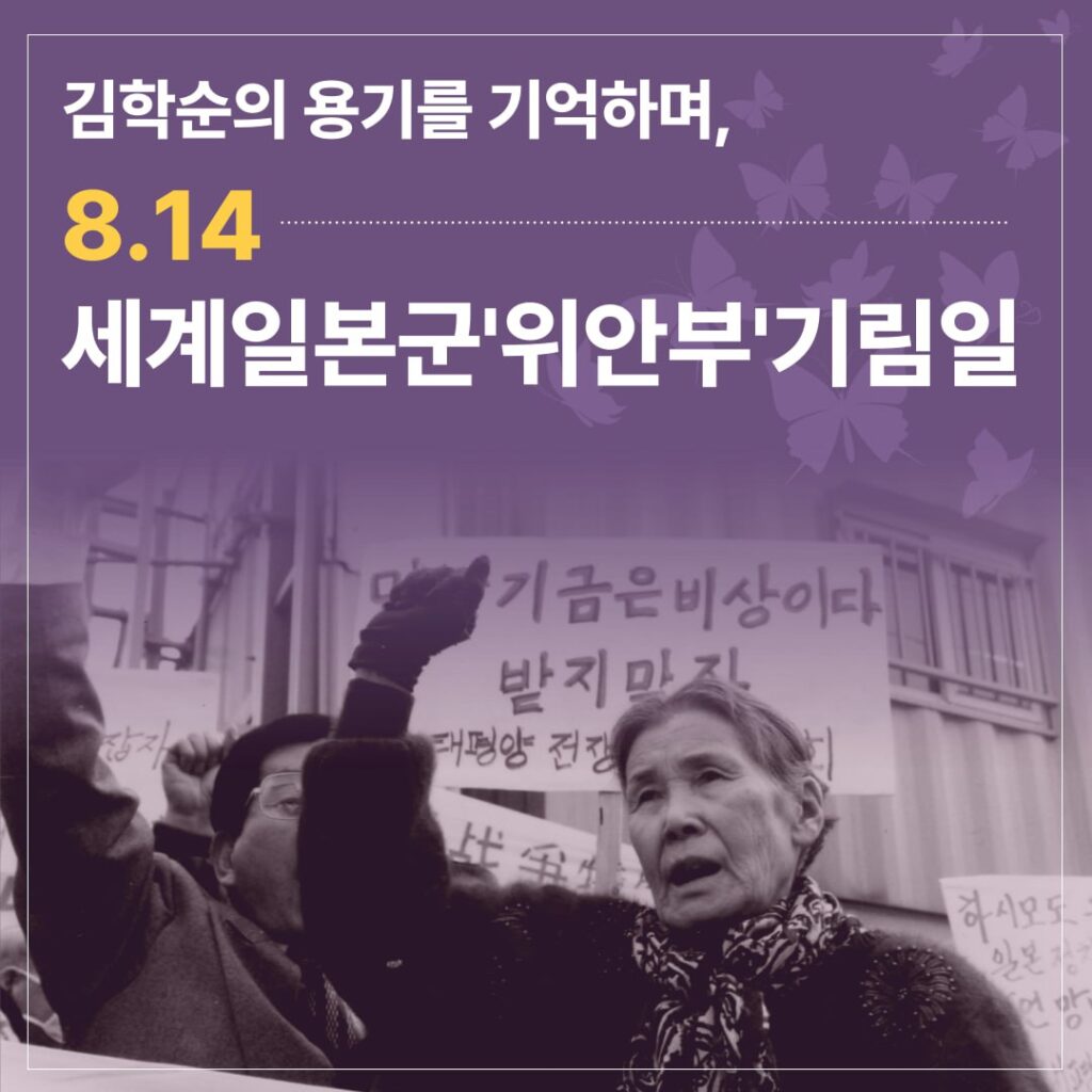 32년 전 8월 14일, 김학순은 증거가 없다며 범죄사실을 부인하는 가해자 앞에 살아 있는 증거가 되어 당당히 우리 앞에 모습을 드러냈습니다. 피해자에게 덧씌워진 낙인과 수치심을 벗어던지고 가해자의 책임인정과 진실규명, 사죄를 당당히 요구하며 세상에 나왔습니다. 다시는 유사한 일이 되풀이되지 않도록 올바른 역사교육의 필요성을 힘주어 말했고, 평화로운 세상에서 한일 미래세대가 어깨를 나란히 할 날을 희망했습니다. 김학순 님은 이후 일본의 책임을 묻기 위한 최초의 당사자 법적 소송을 이끌었고, 국내외 활발한 증언활동을 펼쳤습니다. 머나먼 타국에서 이름 없이 죽어간 수많은 피해자들, 천신만고 끝에 돌아왔지만 숨죽여 살아야만 했던 수많은 피해자들의 대변인이 되었습니다.